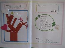 小学3年生の外国語活動では、担任の先生宛てのクリスマスのメッセージカードをかきました、掲示板に掲示してあります。I wish your merry christmas