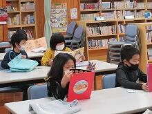 上野小学校では、読書の機会を増やし子どもたちに本の魅力を気づかせるために「相互読み聞かせ」を行っています。3学期最初の読み聞かせは小学3年生が担当します。今日は朝の会の前に自分で読む絵本を選んでいました。