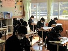 今日と明日の2日間、中学生はテストを受けます。1年生は課題テスト、2・3年生は地区実力テストです。地区実力テストは、延岡市と西臼杵郡、日向市を合わせた順位や希望する高校・学科での順位もわかるので、高校入試に向けて大切なテストです。