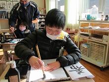 小学5年生の3・4時間目の授業は「書写」でした。今日の授業では、楷書で「希望」と書き、先生の指導を受けながら何度も練習して書いていました。線が太く、力強く書いている児童が多いと思いました。