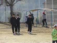 今日は朝から風が強く吹いていました。いつもは多くの小学生が遊んでいる昼休みの運動場ですが、今日は中学生がサッカーをしているだけでした。