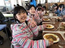 お昼ご飯はカレーでした。朝早くからの移動だったので、みんなお腹ペコペコだったようです。あっという間に食べ終わりました。美味しかったです。