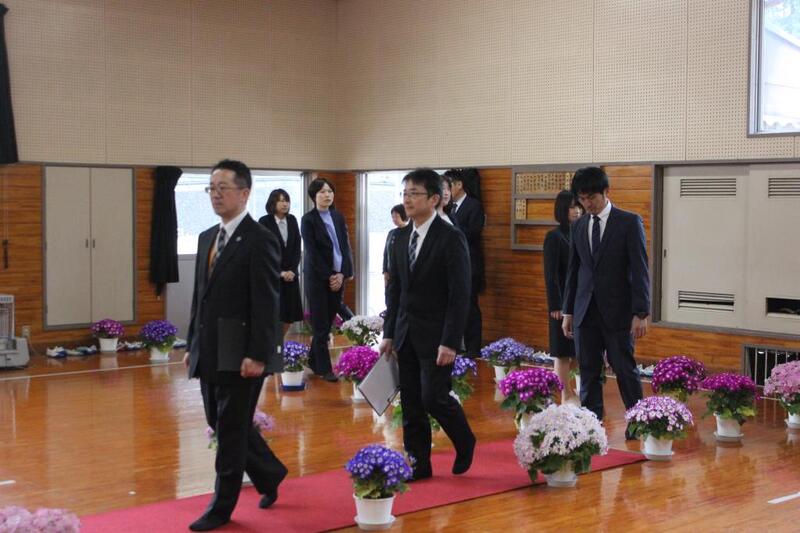 たくさんの花に囲まれて、小学校の入学式が行われました。