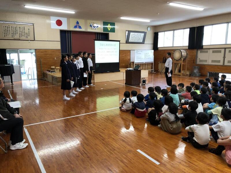 式では、2年生の歌や6年生のエイサーのプレゼントがありました。