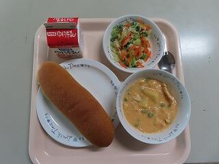 コッペパン キャロットシチュー ブロッコリーサラダ 牛乳