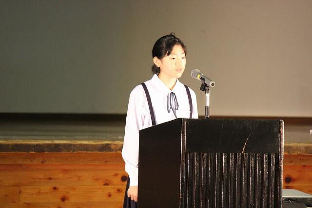 10月10日(土)に上野中学校の文化祭が行われました。午前中は、日本語弁論、英語暗唱弁論、1学年発表「上野の現状を学ぼう」2学年発表「スキット劇~Let's go on a school trip !~」3学年発表「劇 もう一人のピノキオ」、全体合唱・合奏が行われました。午後は、総合的な学習の時間などに練習を重ねた伝統芸能の発表が行われました。1,2年生は「上野臼太鼓踊り」、3年生は「神楽」を発表しました。準備や練習時間の少ない中、全校生徒で一致団結し、素晴らしい文化祭にすることができました。