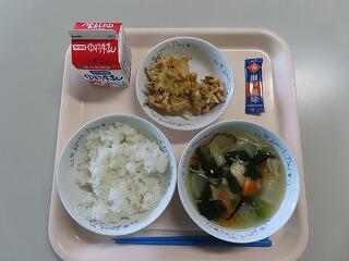 麦ごはん 回鍋肉 中華スープ 牛乳