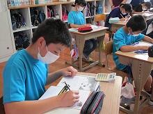 小学5年生の教室では、算数の問題を解いていました。終わった児童は、黒板の前の先生のところに行き、丸をつけてもらっていました。