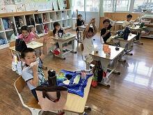 今月初めの計画では、今日(5月14日、金曜日)は1~4年生と6年生は遠足でした。しかし、「新型コロナウイルス感染症拡大防止のための県独自の緊急事態宣言」の発令により、今回の遠足を延期しました。急な変更のため食材の準備ができず、今日の小学校の昼食はお弁当になりました。子どもたちは残念だったと思いますが、各家庭の手作りのお弁当をおいしそうに食べていました。