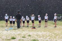 小学生が外でスポーツテストをしていました。運動場を走る種目やソフトボール投げをしていました。子どもたちの元気な声や活発な姿に、私たちも元気をもらっています。