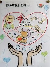 中学1年生の教室には、「いのちの教育」として実施した授業を振り返り、描いた作品が掲示してあります。「命の大切さ」について、命のつながりや家族への感謝の気持ちなどを考える時間になったようです。