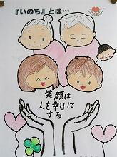中学1年生の教室には、「いのちの教育」として実施した授業を振り返り、描いた作品が掲示してあります。「命の大切さ」について、命のつながりや家族への感謝の気持ちなどを考える時間になったようです。