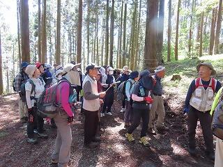 講師の興梠幸男さんから、海を守る山のはたらきと100年のスギを育てることについて説明があり、その後、一般の方々と一緒に見学を始めました。