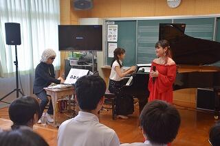 今回の鑑賞教室に来ていただいた3名の方には、本当に感謝しています。すばらしい演奏と歌をありがとうございました。よっくんさん(長山義洋)、おかずさん(荻原和音)、ゆーりーさん(樋高悠里)たちの、これから益々のご活躍を願っています。