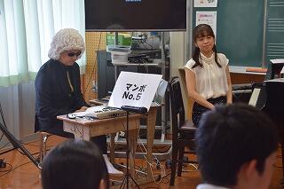 いきなり始まった公開録音の状況に生徒も驚きながらでしたが、DJの進行に合わせて進むプログラムを自然に受け入れながら、音楽を作り上げていく様子、ピアノ演奏や歌による音楽の紹介を楽しんでいました。