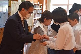今年も新たに中学1年生が入学し、一人一人にバッヂが送られました。