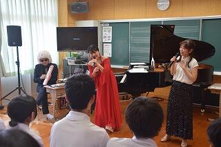 今回の鑑賞教室に来ていただいた3名の方には、本当に感謝しています。すばらしい演奏と歌をありがとうございました。よっくんさん(長山義洋)、おかずさん(荻原和音)、ゆーりーさん(樋高悠里)たちの、これから益々のご活躍を願っています。