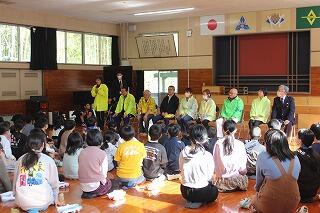 4月22日(月) 高千穂警察署、交通安全指導員、上野駐在所の方に期いただき、児童生徒に交通安全教室を行っていただきました。