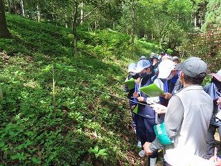 中学1年生と2年生が、鳥屋岳「悠久の森」でクマガイソウ自生地の見学と、山を守ることについて話を聞いてきました。
