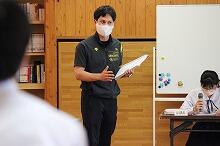 中学2年生の理科の授業です。以前行った「水の電気分解」の結果も思い出しながら、水の分子モデルについて勉強していました。小学生の授業を見た後で中学生の授業を見ると、内容が難しくなっていることが分かります。