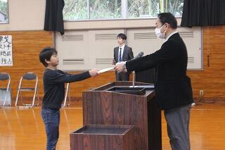 卒業生へ卒業記念品授与及び卒業生から卒業記念品贈呈がありました。
