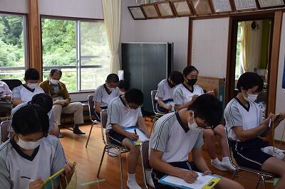 7月6日(火) 中学3年生が社会科及び環境学習の一環として高千穂町土呂久地区にて校外学習を行いました。宮崎大学の川原先生のご指導と地域の方々の説明や講話及び土呂久鉱山跡の見学などを行うことができました。
