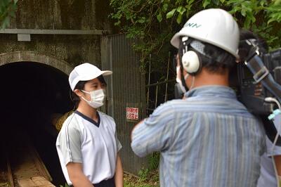 県内のテレビ局2社、新聞社2社の方から亜ヒ酸公害についての学習と大切坑見学についての取材を受けました。それぞれの生徒が自分の感想をしっかりと述べていました。