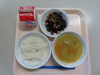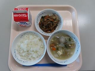 麦ごはん 千切り大根の炒め煮 かきたま汁 牛乳