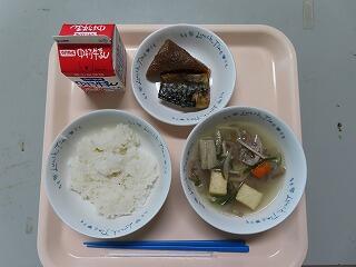 麦ごはん 鯖のホイル焼き 鶏ごぼう汁 牛乳