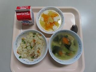 チキンライス ポテトスープ フレンチサラダ 牛乳