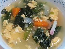 今日の献立は「ぬくもりランチ」です。茄子、ピーマン、トマト、玉葱、ほうれん草、キュウリは、地域の食材が使われています。