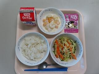 麦ごはん すまし汁 マヨネーズ和え 牛乳