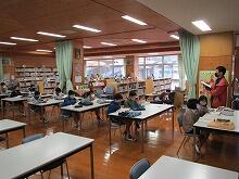 学校図書館では小学5年生が国語の授業受けていました。「図書館にある本を紹介する」ために、実際に図書館で授業を受け、この後「紹介する」本を選んでいました。