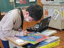 小学5年生が図工の時間に版画に取り組んでいました。今回の版画は「一版多色刷り版画」で、一枚の版木を刷って彫ることを繰り返しながら色を重ねていき完成させます。彫刻刀を上手に使い、次に使う色を考えながら制作を進めていました。出来上がりが楽しみです。