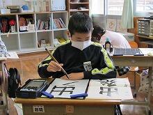 小学4年生が国語の時間に書写をしていました。楷書で書いていたのは、1月にふさわしい「出発」です。書き順や書くときに気をつけることを指導してもらい、一生懸命練習していました。見ていた時間は15分程度でしたが、その時間だけでも、子どもたちが書いている字は上手になっていました。