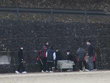2時間目の運動場では小学3年生と4年生が体育の授業で縄跳びや鉄棒をしていました。気温は2℃です。寒さに負けず、元気な上野っ子たちです。