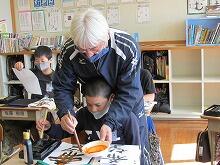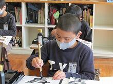 小学5年生の3・4時間目の授業は「書写」でした。今日の授業では、楷書で「希望」と書き、先生の指導を受けながら何度も練習して書いていました。線が太く、力強く書いている児童が多いと思いました。