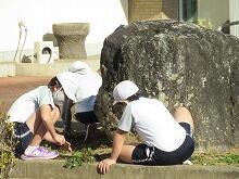 今日の清掃時間は、全校児童生徒と職員で学校をきれいにする「玄武タイム」でした。今日の活動は、小学生が花壇の除草とプランターに植えてある花の花がら摘み、中学生が運動場の周囲の落ち葉集めや除草でした。