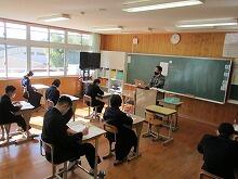 高千穂町役場税務課より講師をお招きして中学生を対象とした「租税教室」を開催しました。今日は小学校の「租税教室」の振り返りやパンフレットを使った税金の種類の確認をし、税金が私たちの生活にどのような影響を与えているのかを学習しました。