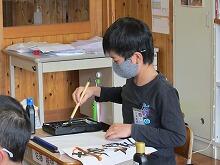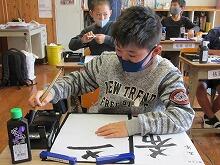 小学5年生の3・4時間目の授業は「書写」でした。今日の授業では、楷書で「希望」と書き、先生の指導を受けながら何度も練習して書いていました。線が太く、力強く書いている児童が多いと思いました。