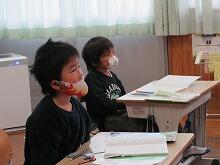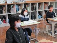 今朝は、昨夜遅くに降った雪が道路の端や駐車場に少し残っていて、運動場が白くなっていました。それでも子どもたちは元気に登校してきました。手袋をしていない子どもに寒くないか聞くと、「20分程度歩いてくると体が温まります。」と返ってきました。なんとたくましいことでしょうか。