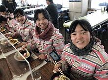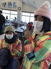 雪山体験学習の午前の部が終わり、昼食の写真などが届きました。スキーやスノボードを楽しんでいるようです。