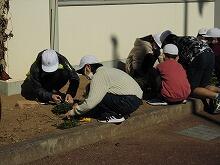 今日の清掃時間は、全校児童生徒と職員で学校をきれいにする「玄武タイム」でした。今日の活動は、小学生が花壇の除草とプランターに植えてある花の花がら摘み、中学生が運動場の周囲の落ち葉集めや除草でした。