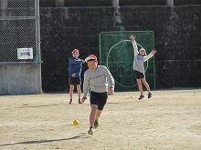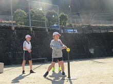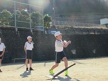今日の上野は朝からよく晴れていて、午前中は雲一つなく、青空が広がっていました。運動場では小学5年生が体育の授業で”ティーボール”をしていました。今日はその1時間目でした。5年生11名のうち、ソフトボールや野球をしているのは一人だけなので、バットにボールが当たらなかったり、投げられたボールを受けることができなかったりしていましたが、みんな楽しそうでした。後半にはキャッチボールをする時間もありました。