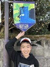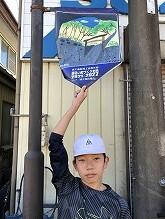 高千穂町商工会青年部の「明るい町づくり事業」に応募した作品がペナントになり、学校近くの国道に掲示してあります。6年生が見学に行き、自分の作品と一緒に写真を撮りました。今年で12回目を迎えたこの事業は、町内の小学6年生を対象にテーマを与えて作品を募集しました。今回のテーマは「高千穂の魅力」でした。