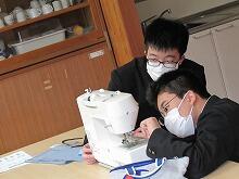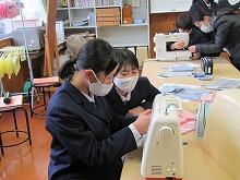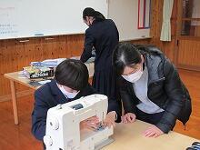 中学3年生が家庭科の授業でエコバッグを作っていました。今年度、上野中学校では環境教育の一環として全学年でエコバッグを作っています。小学校6年生の家庭科の授業でミシンやアイロンは使ったことがありますが、久しぶりだったためか、ミシンの使い方に苦労している生徒もいました。できあがったエコバッグは持って帰って使います。