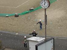 今日の上野は朝からよく晴れていて、午前中は雲一つなく、青空が広がっていました。運動場では小学5年生が体育の授業で”ティーボール”をしていました。今日はその1時間目でした。5年生11名のうち、ソフトボールや野球をしているのは一人だけなので、バットにボールが当たらなかったり、投げられたボールを受けることができなかったりしていましたが、みんな楽しそうでした。後半にはキャッチボールをする時間もありました。