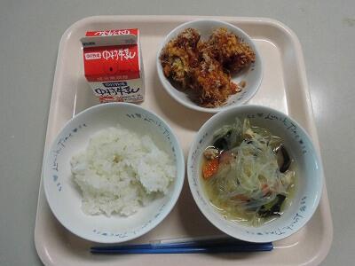 麦ごはん 大豆のかき揚げ 塩昆布和え