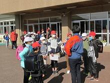 始業の日の授業は午前中で終わりました。青空が広がり、暖かな日差しの下、小学生は6年生を先頭にして集団で下校しました。
