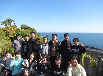 高千穂を出発した修学旅行団は堀切峠に到着し、道の駅フェニックスで休憩をして、集合写真を撮りました。とても天気がよく、半袖でも大丈夫なくらい暖かいです。キラキラした海にみんな大興奮です。
